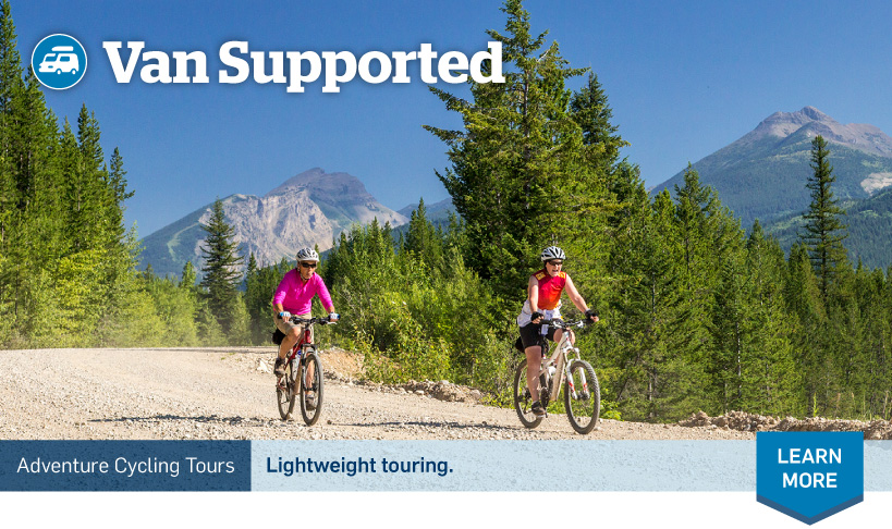 You want fun, good food, gear-free riding, and other like-minded people to share the road? Then consider one of our popular van-supported tours. Adventure Cycling’s van-supported tours offer all the thrills of a classic, self-contained tour: a group of around 13 riders, camping, and shared group cooking. But you’ll spend your riding days free of personal and group gear since we provide a van to do all the heavy lifting, and two experienced leaders will make your tour one to remember. The group may also use the support van to take side trips that would not be reachable otherwise. We offer van-supported epic, cross-country adventures and many one- to two-week tours. We include occasional motel overnights (one every 10 days) on longer trips.