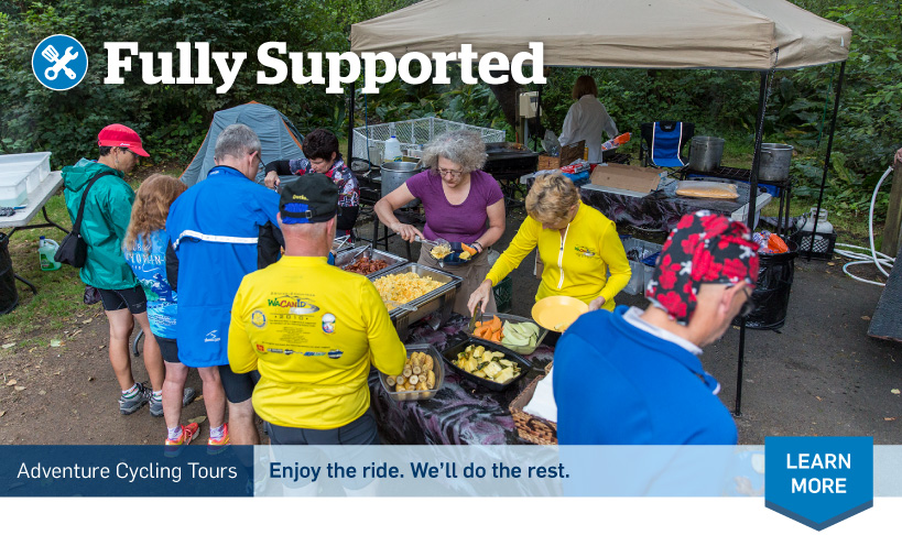 An Adventure Cycling fully supported tour is a great choice for the adventure-hungry cyclist who prefers riding with a larger group and a smaller load — the individual who relishes the freedom of riding unencumbered but still enjoys camping and a cycling challenge.
