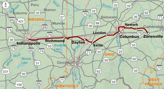 | 2. Indianapolis, IN to Zanesville, OH | Detail |