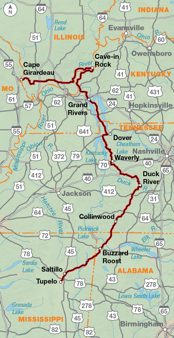 | 2. Cape Girardeau, MO to Tupelo, MS | Detail |