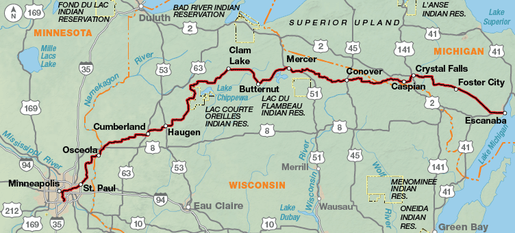 | 1. Minneapolis, MN to Escanaba, MI | Detail |