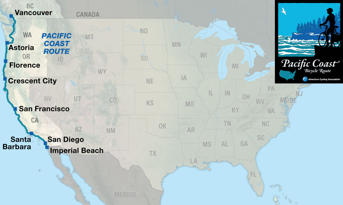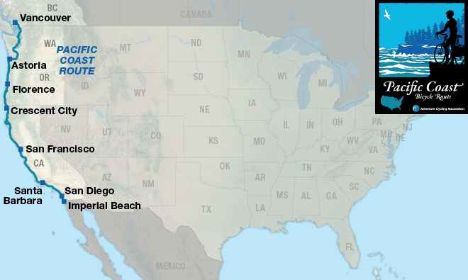 The route’s terrain in Canada and Washington is flat to rolling hills, with a few climbs. Biking along the Oregon coast means hills, and some of them are steep, but it also means that your spectacular views will be well-earned. Don’t forget that your uphills on one side of a coastal headland mean a downhill on the other side.