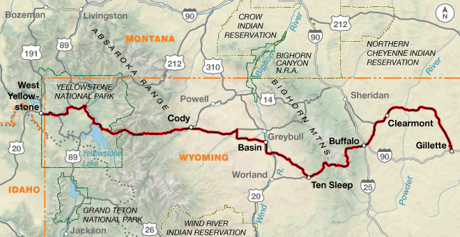 | 1. West Yellowstone, MT to Gillette, WY | Detail |
