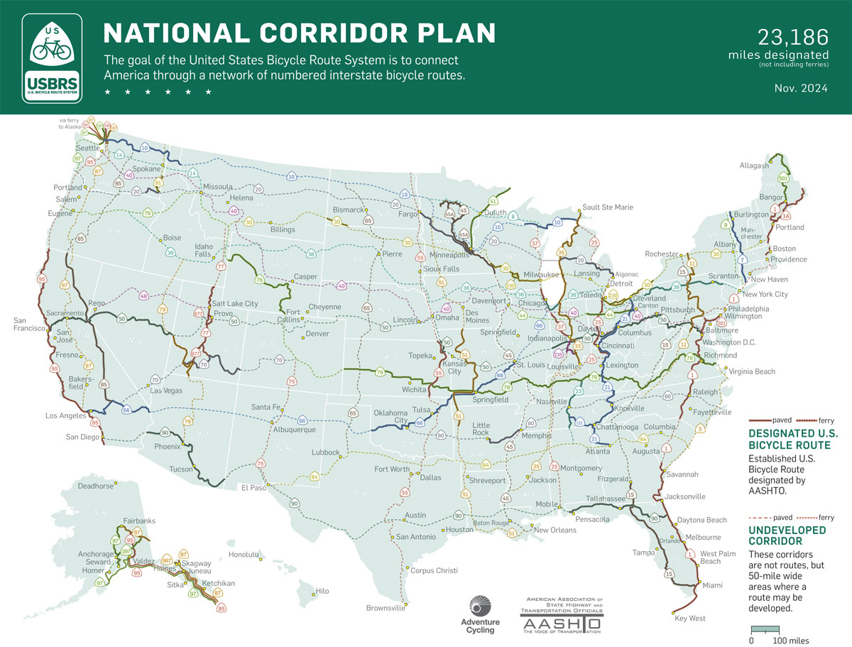 The National Corridor Plan is the blueprint for U.S. Bicycle Route development, and shows what the 50,000-mile network will look like when complete.