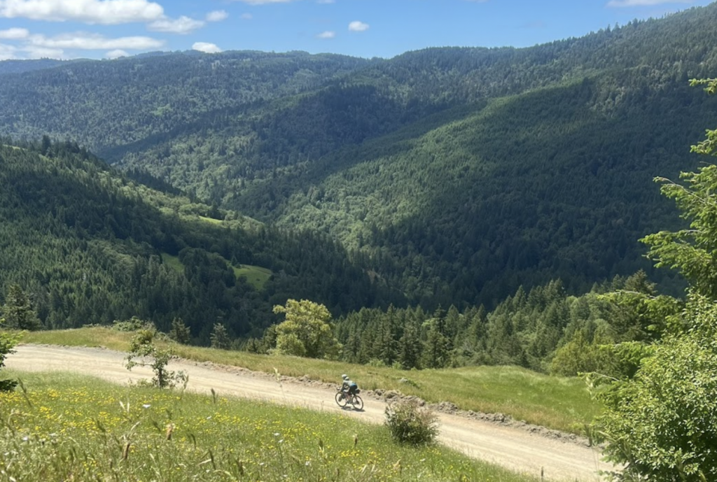 It was the Friday of Memorial Day weekend. I questioned why we weren’t swimming and grilling out on the long weekend, like normal people. Instead, I was huffing and puffing and checking the map every tenth of a mile to see if we were at the top of the long, steep gravel climb. We had left our house near the breezy Pacific Ocean in Arcata, California, and pedaled 35 miles over two watersheds, inland to the mountains and the heat.