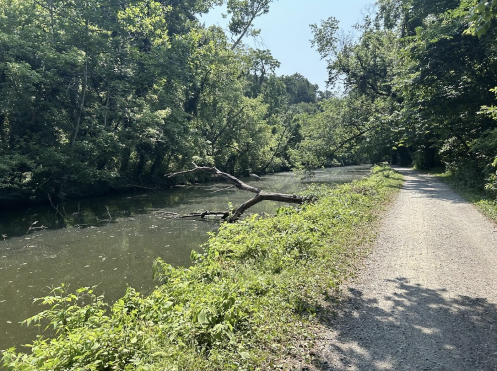 Around four in the afternoon, a group of us left for a four-mile hike up the trail and then onto the Gold Mine Trail. The trail leads to the ruins of a 19th century gold mine established during the Civil War. But the real gold is the trail itself: winding through Great Falls, Maryland, the tall trees offered ideal amounts of shade and we hiked to the sound of a babbling creek running alongside our path.