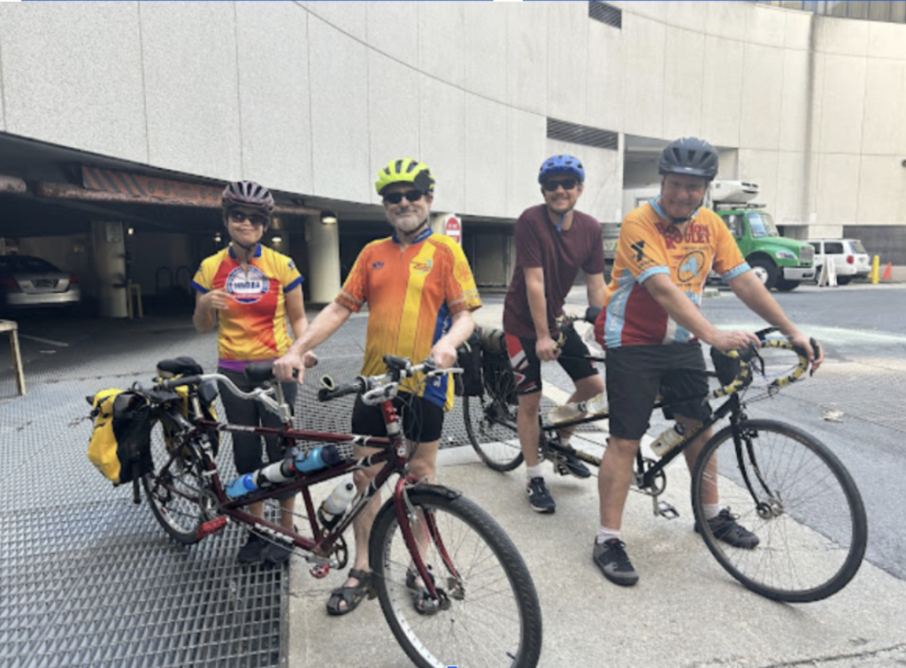 Eight tandem pairs and our wonderful drivers met at the Bethesda Metro. Everyone was already sweaty but buzzing with excitement. This year, one of our campers, Qudsiya Naqui, served as our documentarian—she was at the ready with her phone to record our experiences for an audio story that will be featured on her podcast, Down to the Struts, in Fall 2024.